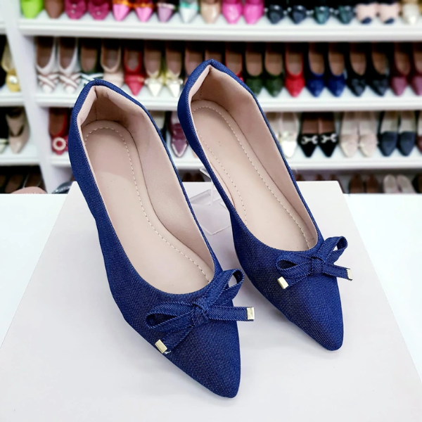 Sapatilha bico fino alongada jeans