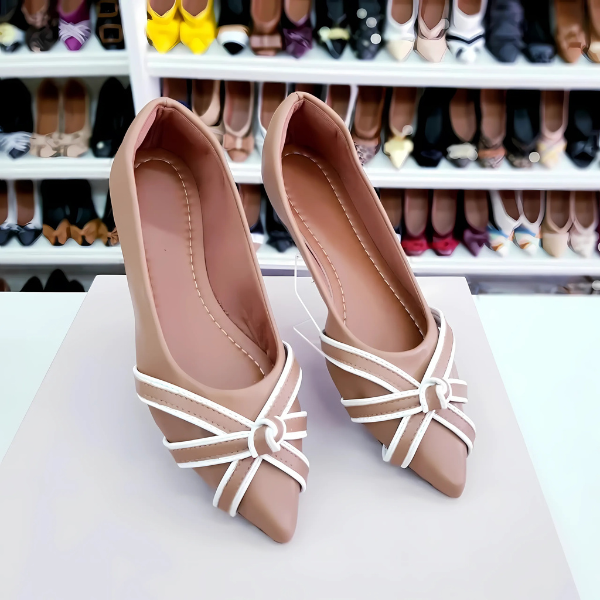 Sapatilha bico fino Alongado Nude com Detalhes Branco
