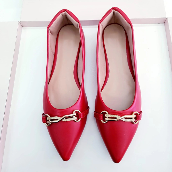 Sapatilha Bico Fino Mariana Vermelha com Detalhes