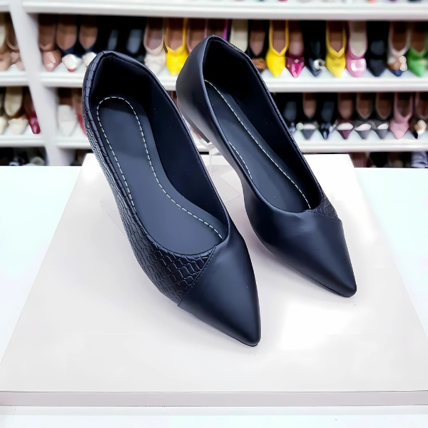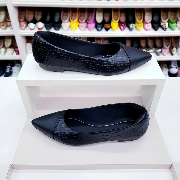 Sapatilha Prime bico fino alongada Stella Preta Snake
