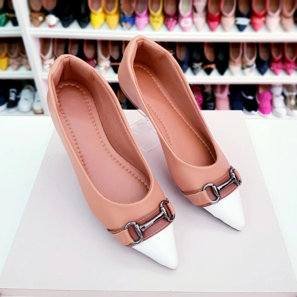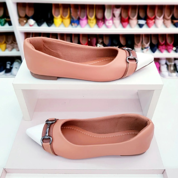 Sapatilha Prime bico fino Nude com ponta branca