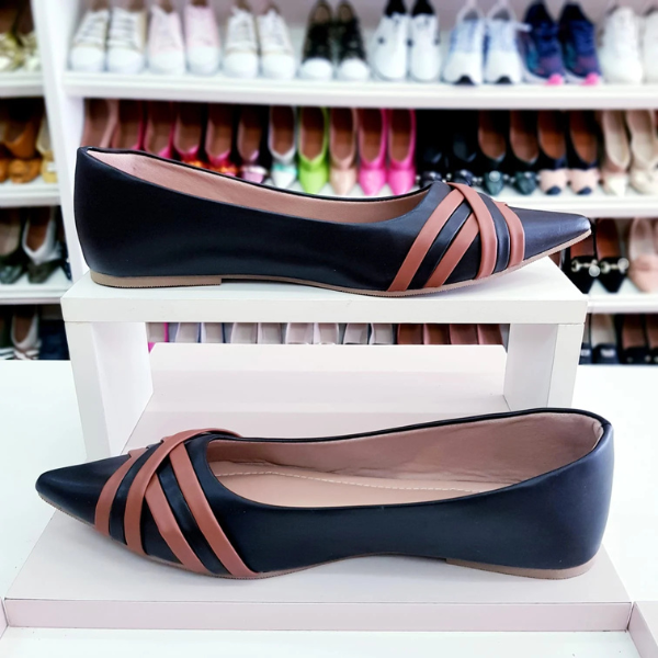 Sapatilha Prime bico fino Preta com Caramelo